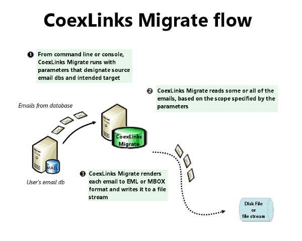 CoexLinks Migrate is the premier solution for high fidelity representation of email, whether it is to be stored on disk or streamed to another email system. Many emails are formatted carefully with the expectation that the recipients will see what has been created. Without a high fidelity conversion to EML/MBOX, your new email system or archival reposiory may return deceptive, incomplete, ill formed or unprofessional results. CoexLinks Migrate ensures your migrated emails are as professional and accurate as they were back in IBM Domino.